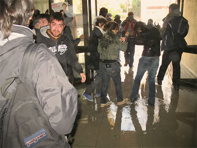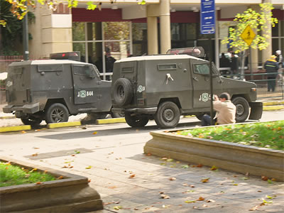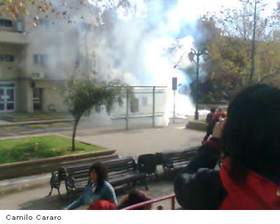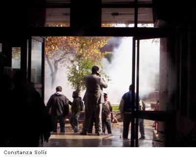 Espero que en esta nueva convocatoria no se sigan generando esas escenas tan violentas de las que fui testigo la semana pasada, imágenes que se insertan en la retina de los jóvenes que ya nacieron en democracia. Aquí les presento una serie de fotografías tomadas por algunos de mis alumnos de primer año de Periodismo, un día “normal” de clases, justo a la salida de la universidad. Hablan por sí solas…