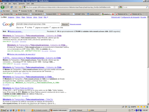 Navegando por la web, ejecutamos la búsqueda ‘Ministro telecomunicaciones chile’ en Google. El resultado arroja disímiles respuestas.