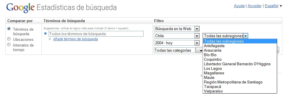 Por ejemplo la base para un término de búsqueda durante 2008 será 2007. La base de la comparación para solución 2004 – hoy son los datos de 2004 hasta la fecha actual.