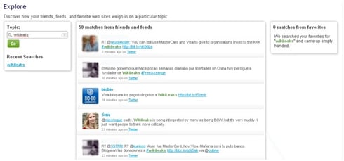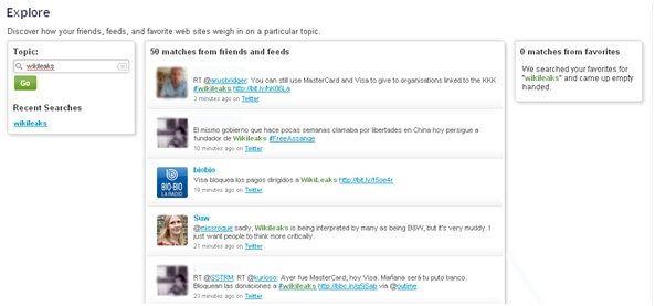 Una de las funcionalidades más atractiva y novedosa, es el "explorador de topics" que funciona a partir de palabrasclaves que son introducidas en un buscador y Flock las rastrea en las redes sociales, o en los feeds de sitios RSS favoritos, entregando el listado de veces que la palaba fue mencionada.