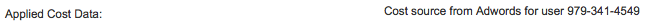 Una forma complementaria para comprobar el traspaso de costos entre ambas herramientas es navegar hasta los Settings de tu Profile en GA y verificar que Applied Cost Data posee alguna fuente de costos Adwords. En ese caso, podrás ver en los Settings de tu perfil algo como: